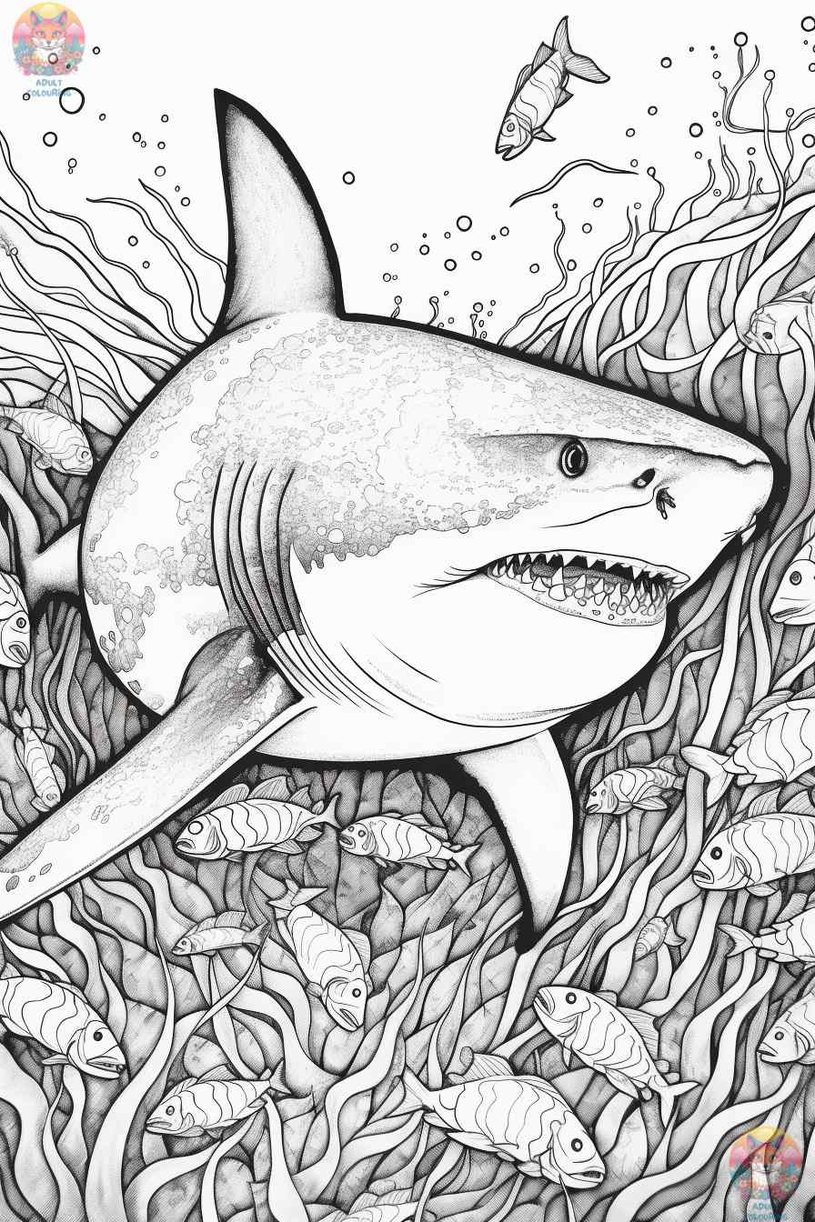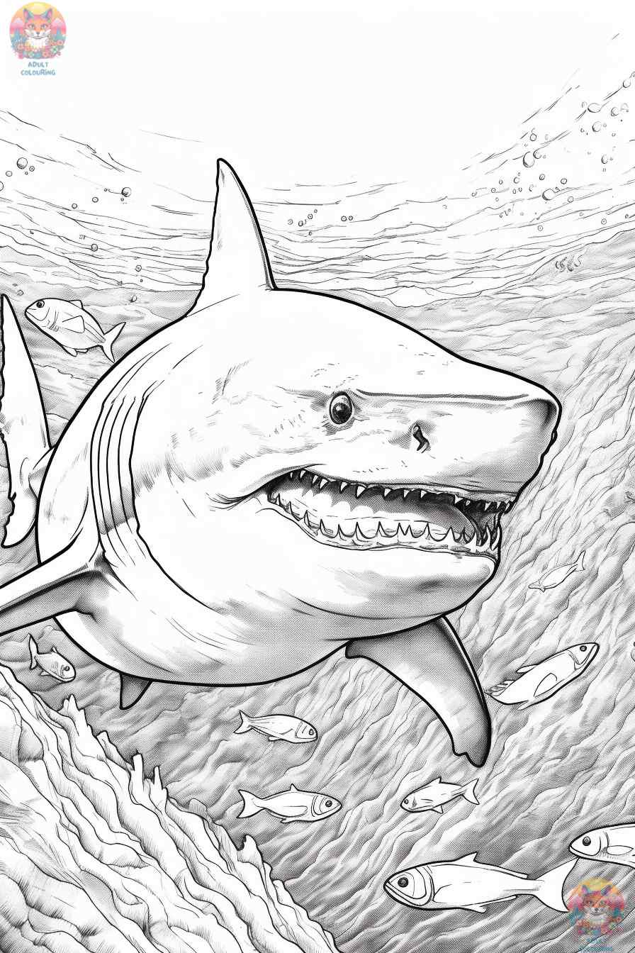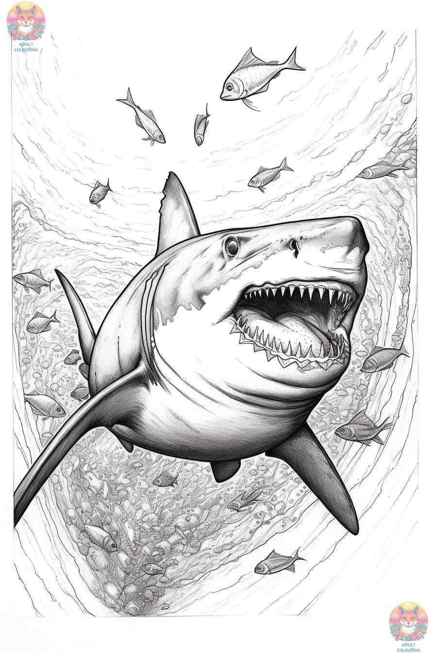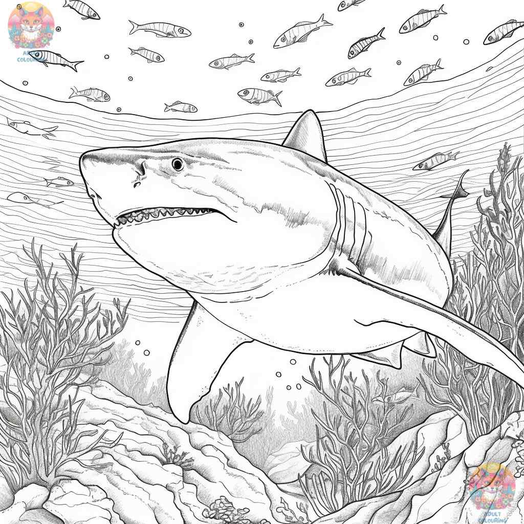 A Deep Sea Journey with Great White Shark Coloring Pages