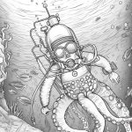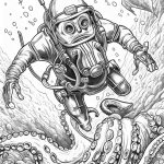Imagine this scene on your squid coloring page.