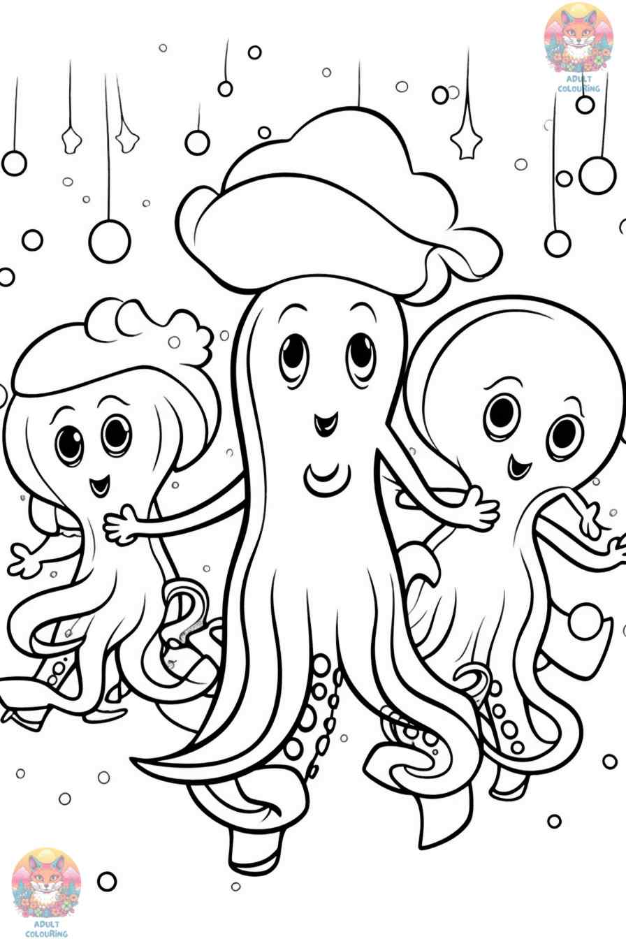 Imagine this scene on your squid coloring page.